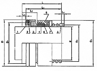 1、靜環(huán)墊 2、靜環(huán)○型圈 3、靜環(huán) 4、動(dòng)環(huán) 5、動(dòng)環(huán)座 6、動(dòng)環(huán)○型圈 7、推擋圈 8、彈簧